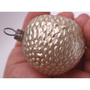 Two beautiful vintage flower indent Christmas ornaments -- one with a bumpy texture in silver with pink accents on the flower and the other a bit newer, with pink flower inside silver. The newer ornament has a pink and green trimmed rim with little raised snow polka dot and cap is marked West Germany. The older ornament is unmarked. Older ornament measures 2" high x 1 3/4 in diameter. Both are in good vintage condition overall with just the wear expected on vintage Christmas ornaments -- minor spotting/discoloration and rubbing or flaking of the color.