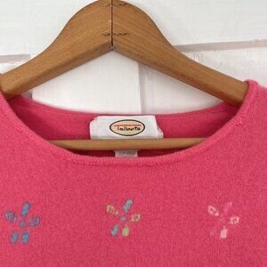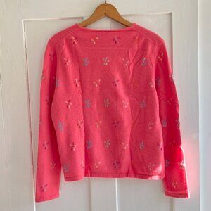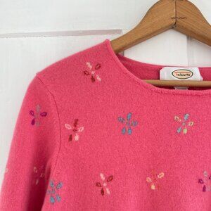 VGUC bright pink 100% cashmere crewneck sweater with embroidered floral details! Only flaw is some parts of the neckline came loose and have been resewn. Super cute and so so soft! Perfect for adding color to an outfit, very luxurious!