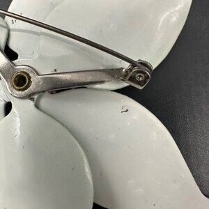 Vintage Flower Power Brooch Pin Mid Century Enamel Retro Green White Floral