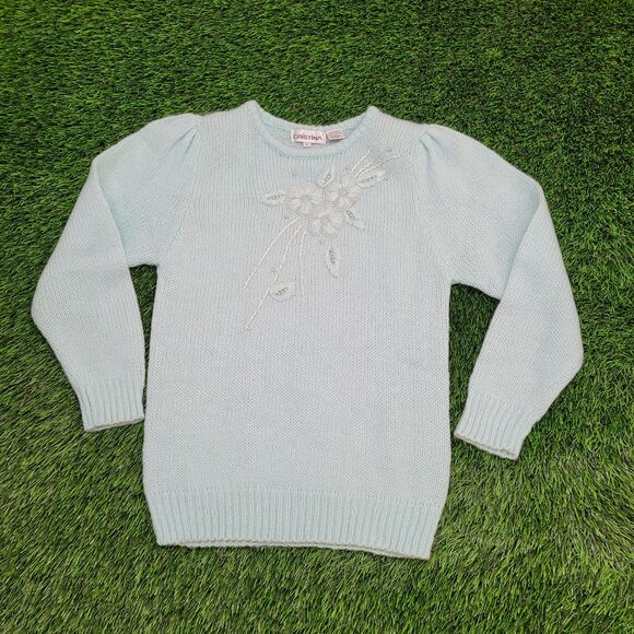 Add charm to your look with this vintage floral sweater in XS, featuring a blue-green hue—perfect for retro fashion lovers!