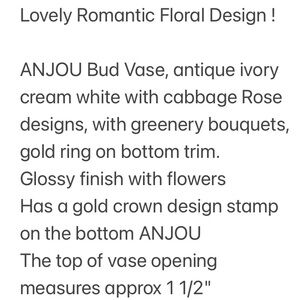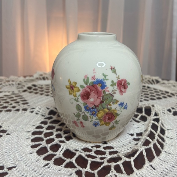 Vintage Flower Vase ANJOU Cottage Pink Rose Mauve Blue Ivory Cream Floral Decor