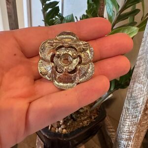 Vintage Flower brooch cream and black Flower Pin Black and White Flower Gift