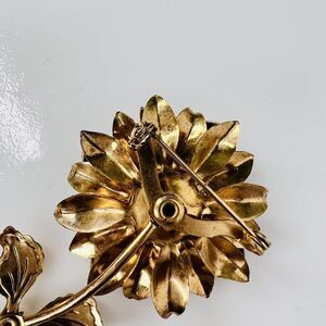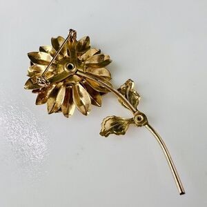 Vintage Flower w Stem Brooch Brown Enamel Aurora Borealis AB Rhinestones