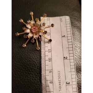 Vintage Flower w/Pink Rhinestone Center Starburst Gold and Silver Toned Brooch