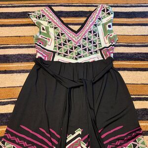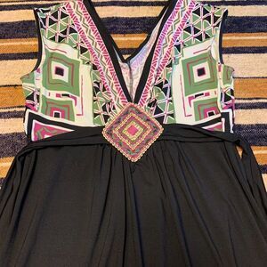 Vintage Flowy Stretch Dress Y2K Embellished Geometric Tribal V-Neck Pattern