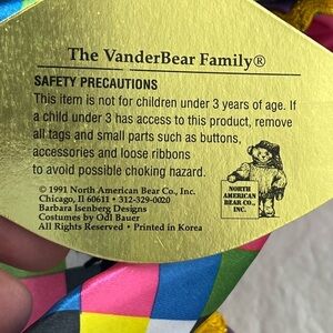 Vintage Fluffy Vanderbear 1991 Bal Masque Colombine Bear nwt