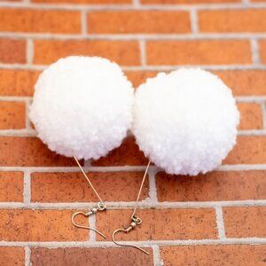Vintage Fluffy White Pom Pom Sterling Silver Dangle Earrings - W30