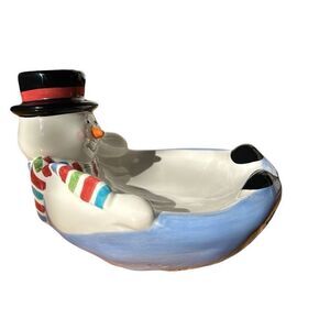 Vintage Flurries Collection Melted Snowman Holiday Christmas Trinket Dish
