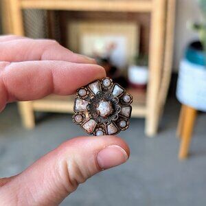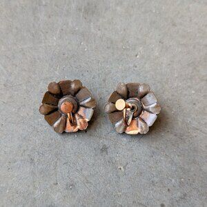 Vintage Fluss Glass Pink Stone Bronze Metal Screwback Earrings