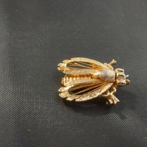 Vintage Fly Brooch Pin Gold Metal Insect Jewelry