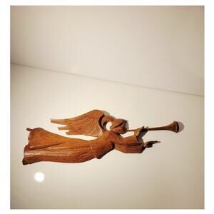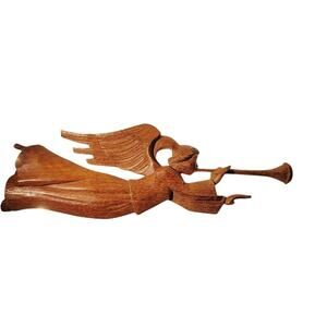 Vintage Flying Angels with Horn Wall Decor Wood Christmas Holiday Gifts 15"