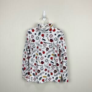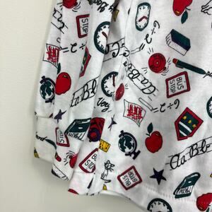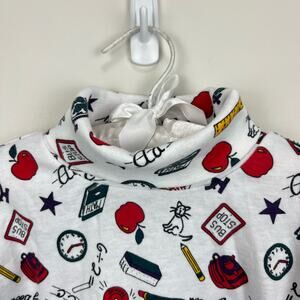 Vintage Flying Colors School Turtleneck Top. Boy or girl size 5-6 years. Long sleeve white shirt with fun back to school themed print - apples, rulers, clocks, math books, backpacks, and more!