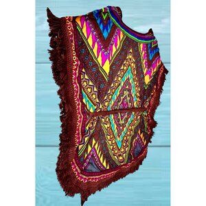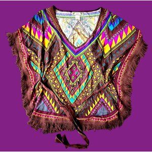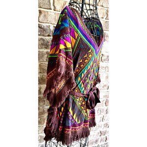 Vintage Flying Tomato Kimono Fringed Top Small Boho Tribal Aztec Front Ties