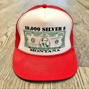 Vintage Foam & Mesh Rope Flat Brim Snapback Hat Cap 10,000 Silver $ Bar Montana