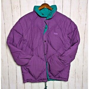 Vintage Fogo Reversible Down Ski Snowboard Jacket Medium Purple Green 80s 90s