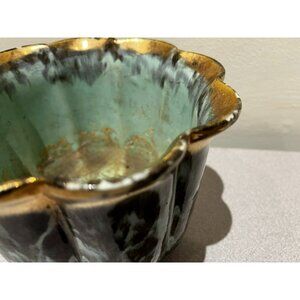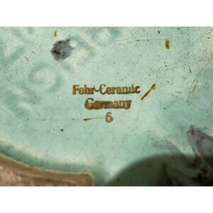 Vintage Fohr Ceramic GERMANY Green Gold Glazed drip bowl 7"