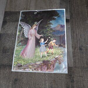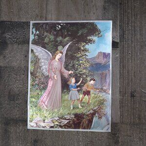 Vintage Foil Gaurdian Angel with Children Print Dufex England Christian 8 by 6