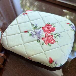 Vintage Folding Travel Mirror with Vinyl Floral Storage Pouch