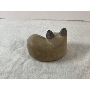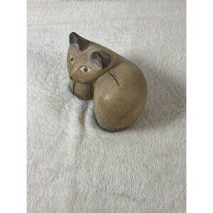Vintage Folk Art Carved Wood Cat Signed Sweet Made in Thailand primitive
