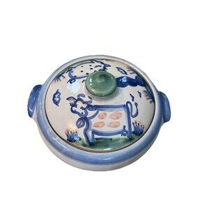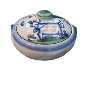 Vintage Folk Art M A Hadley Pottery Deep Serving Bowl W/ Lid-Both Signed 10in