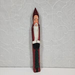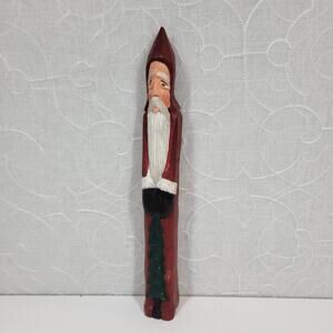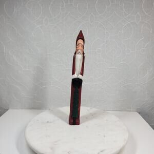 Vintage 1975 Folk Art Pencil Santa Christmas Tree 13" Red Green Wood Carved