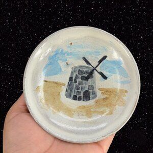Vintage Folk Art Pottery Hand Made Dish Plate Trinket 1998 Marked Windmill VTG