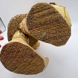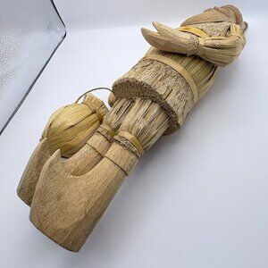 Very good condition with defect in wood on one foot as shown. Will not stand up on its own. Measures about 18" tall.
