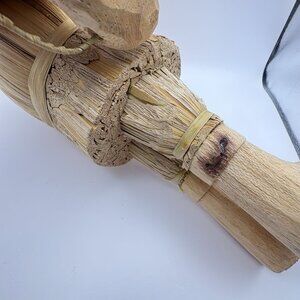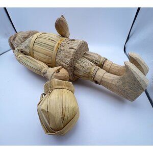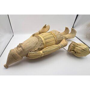 This intricately designed Santa figurine is made from straw and wood, showcasing exceptional craftsmanship. Ideal as a charming holiday décor piece.