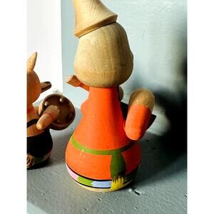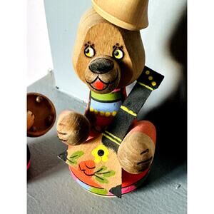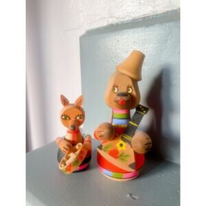 Vintage Folk Art USSR Wooden Figurine Animals Bear & Fox Hand Painted Collect