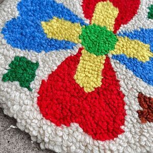 Vintage Folk Art Punch Needle Flower Accent Rug Tapestry Wall Art Pillow