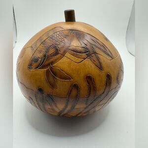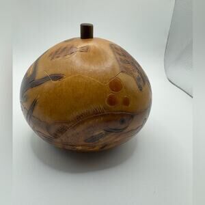 Vintage Folk art Gourd Handmade Gourd Ocean Life Themed Trinket Box Made In Peru