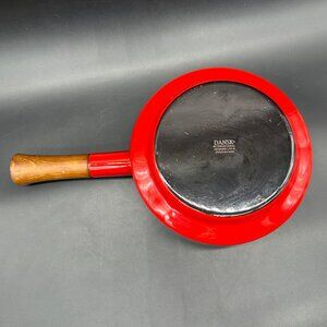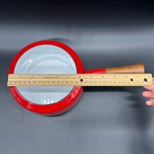 Vintage Fondue Pot Saucepan Dansk Kobenstyle Red Enamel Teak Wood No Lid