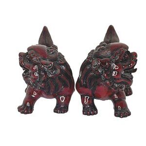 Vintage Foo Dog Pair Red Resin Asian Guardian Lion Figurines 4 in long each