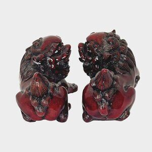 Vintage, unsure of age, heavy red glossy resin FOO DOGS. Great looking small pair, see dimensions below.