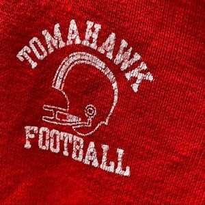 Vintage XL Tomahawk Football red pullover sweater. jock boyfriend look. 50% creslan and 50% rayon. Wide v neck. Measures 23” across the chest. Length from top of shoulder to hem measures 25.5”. Great vintage condition. See photos for details.