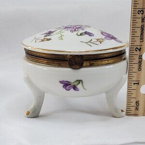 Vintage Footed Porcelain Forget Me Nots Trinket Jewelry Box Victorian Floral