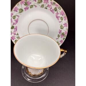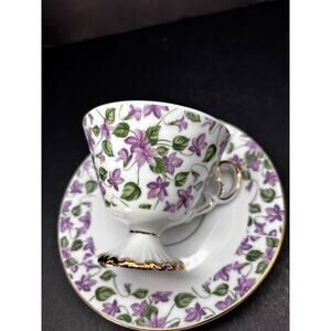 Vintage Footed Teacup and Saucer Chintz, Violet Floral w/Gold Made in Japan