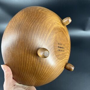 Vintage Footed Wood Salad Bowl Fork Spoon Set By Woodcraftery Made In USA