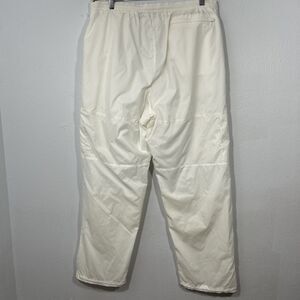 This vintage Footlocker track jacket is a men's extra large white windbreaker with a 90s style. Made of nylon softshell fabric, it features a zip closure, lined interior, and elastic waist for a comfortable fit. The jacket is designed for various occasions such as travel, casual wear, or work, and includes a hood, pockets, and breathable material. With a retro vibe and a Columbia Whirlibird model, this windbreaker offers lightweight warmth and windproof protection, making it suitable for walking or hiking activities in all seasons.