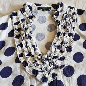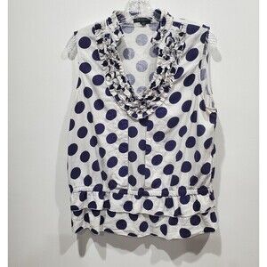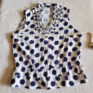 Vintage For Cynthia Sleeveless Linen Blend Ruffled Polka Dot Top, PXL