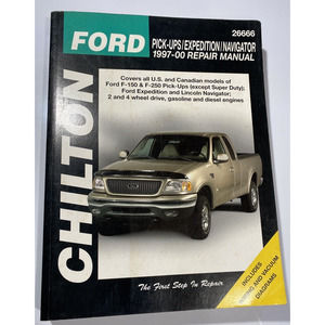 Vintage Ford Pick-ups, Expedition, and Navigator, Repair Manual For 1997-00. Pre-Owned Estate lot motor repair manuals.In good condition. No tears or holes. No missing pages. Cover has garage age on inside jacket. Pages are in good condition with minimal yellowing.