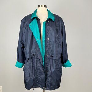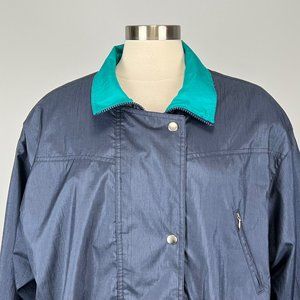Vintage Forecaster of Boston Womens Navy Teal Windbreaker Rain Jacket size L