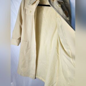 Vintage Forecaster Cream colored poly Trench Coat with 2 faux button front pockets and 2 real pockets. Fully lined, washes beautifully in cold light machine wash and hang dry