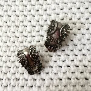 Vintage Foree Sterling Ornate Scroll Signed Clip On Luggage Tag Earrings