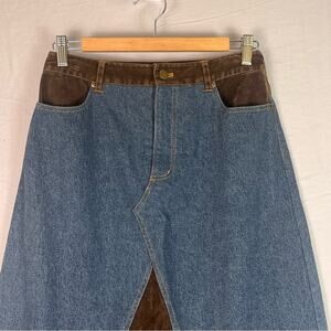 Vintage Forenza Long Denim & Velvet Maxi Skirt Womens 6 Boho Hippie Grunge Y2K