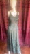 Vintage Forest Green Crossback Embossed Floral Fairy Slip Dress Size Seven