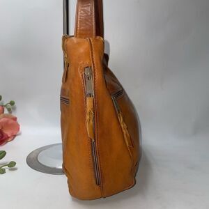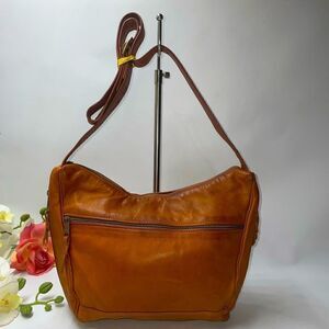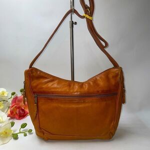 Vintage Forest Leather Shoulder Bag Camel Medium