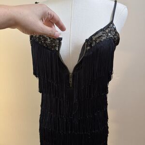 Vintage Forever 21 All Over Fringe + Sequin Mini Dress Black Size M