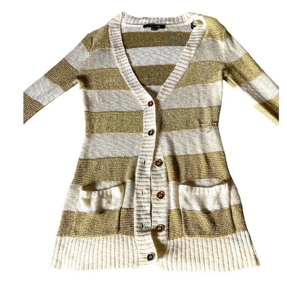 Vintage Forever 21 Cream/Gold Button Down Cardigan Size SM/PM