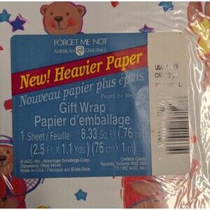 Vintage Forget Me Not Gift Wrap Paper Bears Sports Kids 2.5 Ft x 1.1 Yds